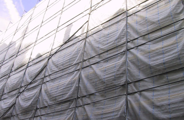 Ces filets d’échafaudage tricotés en polyéthylène peuvent s’utiliser plusieurs fois. Ils retiennent environ 50% du vent et empêchent que des gravats ou des petits matériaux de construction ne tombent sur la voie publique.